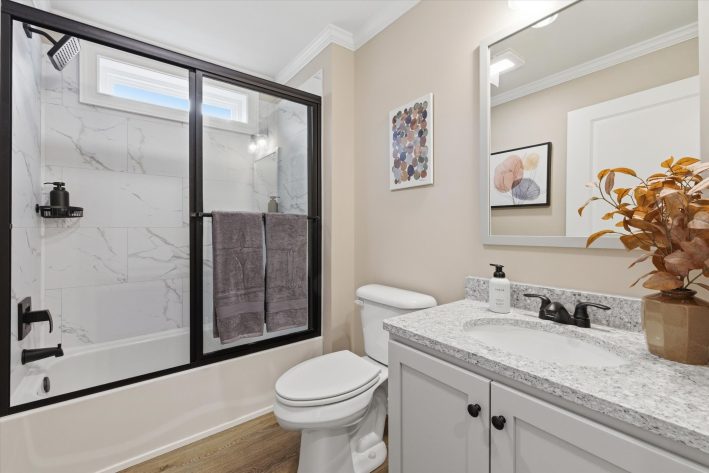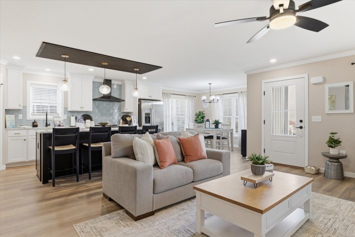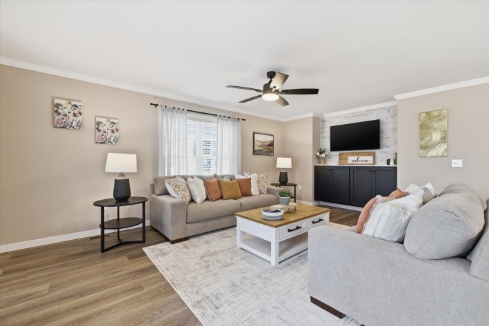 Discover this 3 bedroom 2 bathrooms, 1,508 sq. ft. manufactured home, beautiful open layout, eat-in kitchen, primary suite, walk -in closets, double bowl sinks, stay comfortable year-round with central A/C and a smart thermostat, vinyl flooring throughout. Enjoy relaxing outdoors on the covered porch, driveway and storage shed for convenience. Lawn care, snow removal, trash removal and access to all community amenities are included! Walking path coming soon. Don't miss your chance to live in this vibrant 55+ community-schedule a tour today!